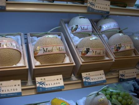 Я глазам не верил, когда в центре Токио фотографировал эти яблоки и дыни. В то время курс иены по отношению к доллару был 100:1, т.е. одно яблоко в том магазине стоило 12.6 американских долларов, а одна дыня – от 157 до 420 долларов. Вот те фотографии: